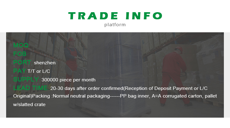 Packaging DetailsNormal neutral packaging------PP bag inner, A=A corrugated carton, pallet w/slatted crate(or as per customers' requirements)Delivery TimeShipped in 20-30 workdays after deposit payment confirmed